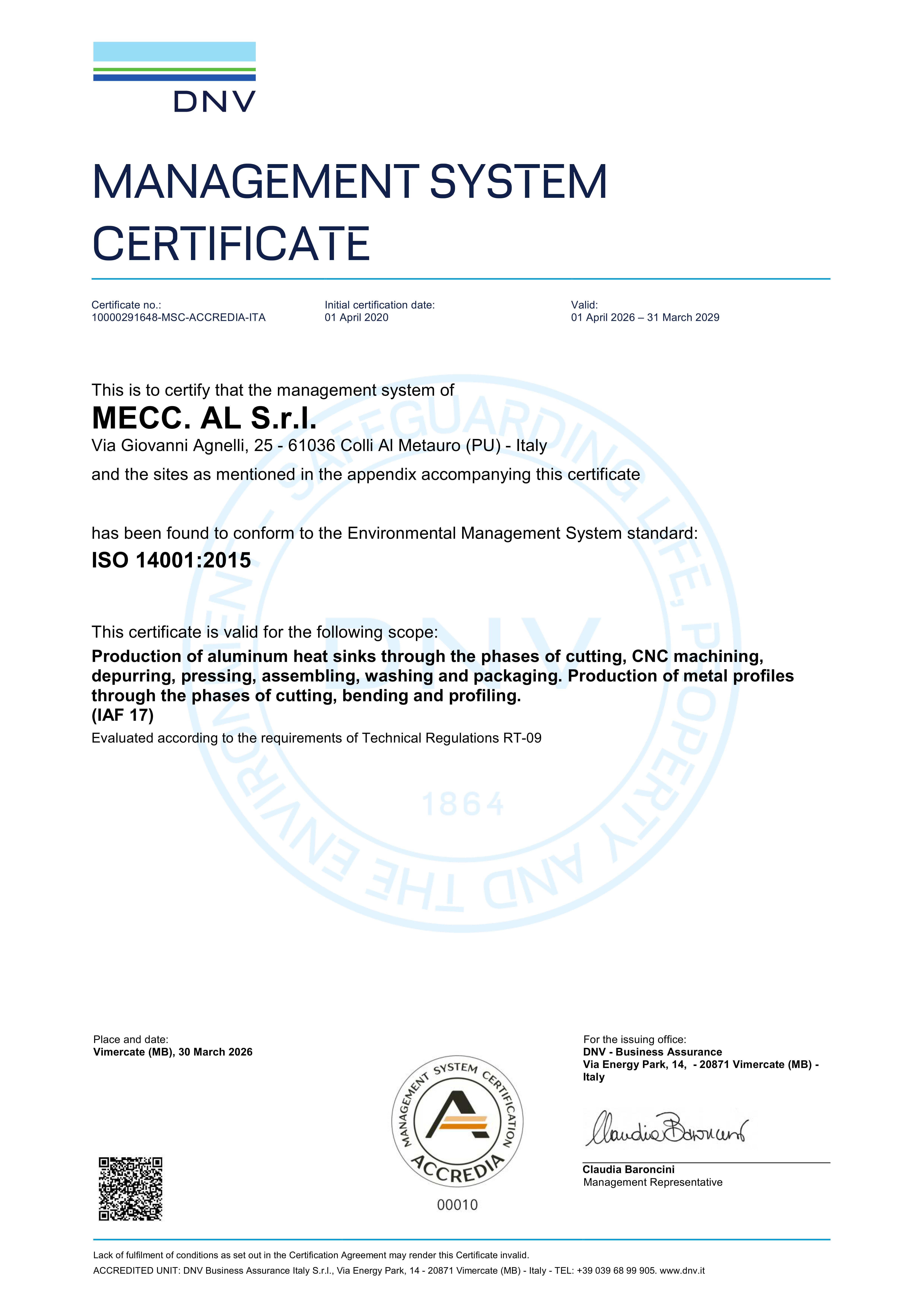 Certificato ISO 14001:2015