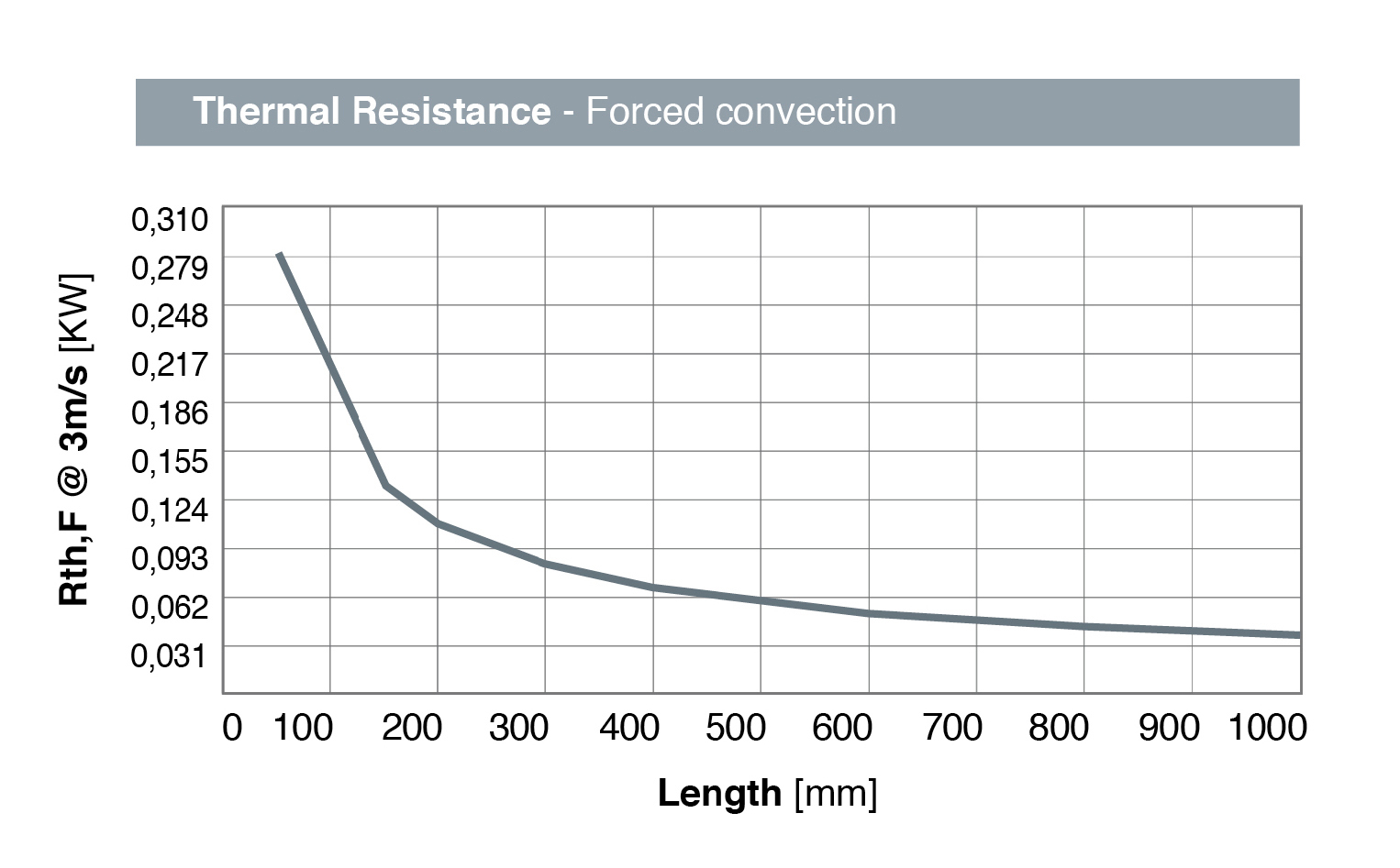 Valori di resistenza termica calcolati per un dissipatore di calore largo circa 100 mm (W). Variando la larghezza del dissipatore, le curve di resistenza termica possono essere approssimate linearmente.