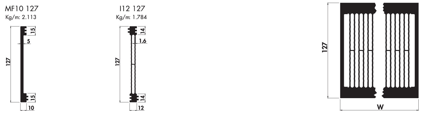 Thermal resistance values calculated for a 100mm ca. wide heat sink (W). Varying the heat sink width, the thermal resistance curves can be linearly approximated.